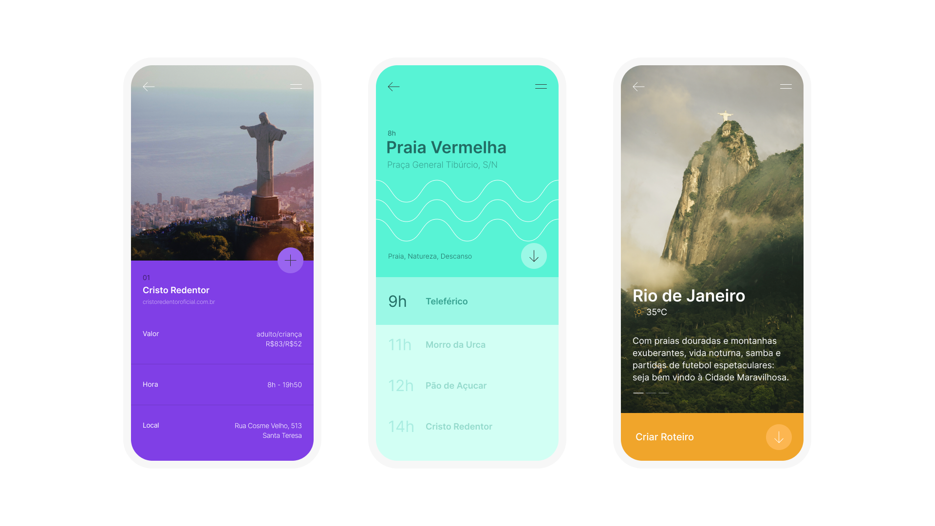 I was responsible for rethinking and redesigning the app, from branding to concept and a few app screens. I aimed to bring more life and movement to the travel app by using bright colors, fewer cards, full-screen photos, and objective information about the city and touristic attractions.